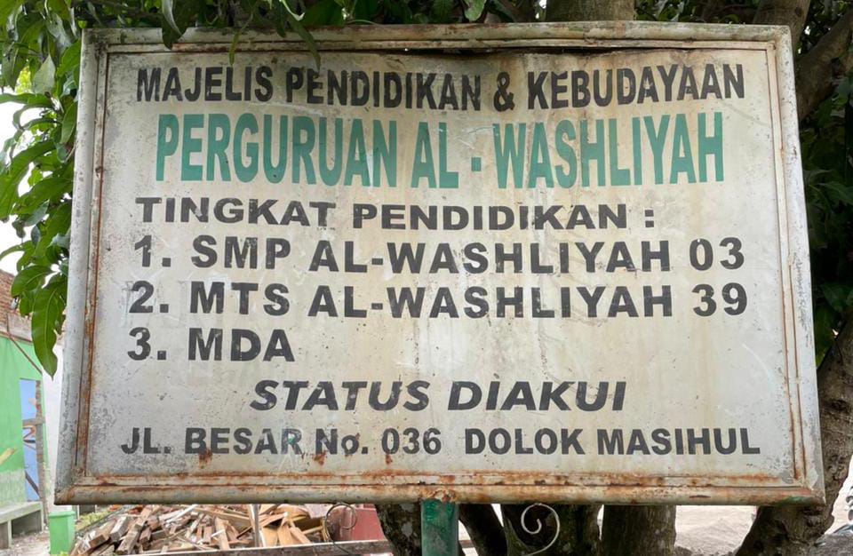 Terkait pemberitaan yang beredar, Kepala SMP 3 Al Washliyah Dolok Masihul menjelaskan bahwa plank masih proses percetakan dan pada hari senin akan dipasang.