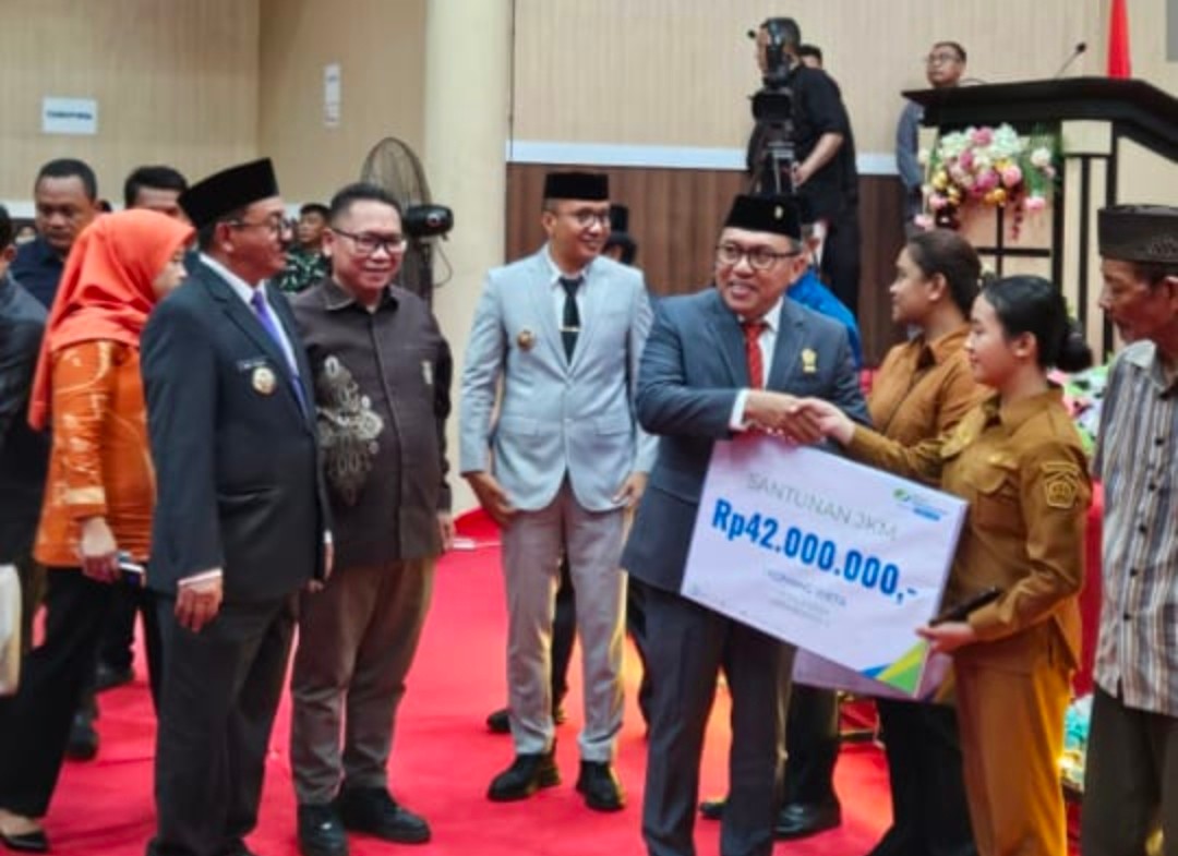 Kegiatan itu diwarnai penyerahan santunan kematian 3 orang peserta BPJS Ketenagakerjaan atas nama I Komang Weta (Kepala Desa Bongo IV Kabupaten Boalemo), Jems Mansyur (Ketua BPD Desa Tangkobu), Suriyati Umar Manto (Non ASN Sekretariat Daerah Kab. Boalemo).