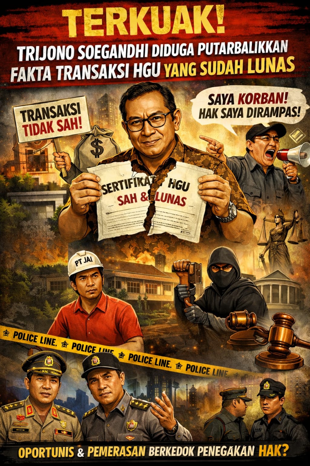Sebagai penutup, rangkaian fakta hukum yang telah terungkap menunjukkan bahwa permasalahan ini tidak semata-mata berdiri sebagai sengketa keperdataan biasa, melainkan telah bergeser pada upaya membangun narasi yang bertentangan dengan realitas hukum yang telah final. Ketika transaksi yang sah, lunas, dan telah memperoleh pengesahan negara justru dipersoalkan kembali melalui klaim sepihak dan langkah-langkah non-yuridis, maka patut diduga terdapat motif lain di luar kerangka penegakan hak. Dalam konteks ini, penegakan hukum yang sedang berjalan diharapkan mampu menjadi instrumen korektif yang objektif, sekaligus menegaskan bahwa hukum tidak dapat diperalat sebagai alat tekanan, melainkan harus tetap berdiri tegak sebagai penjaga kepastian dan keadilan. (Tim)